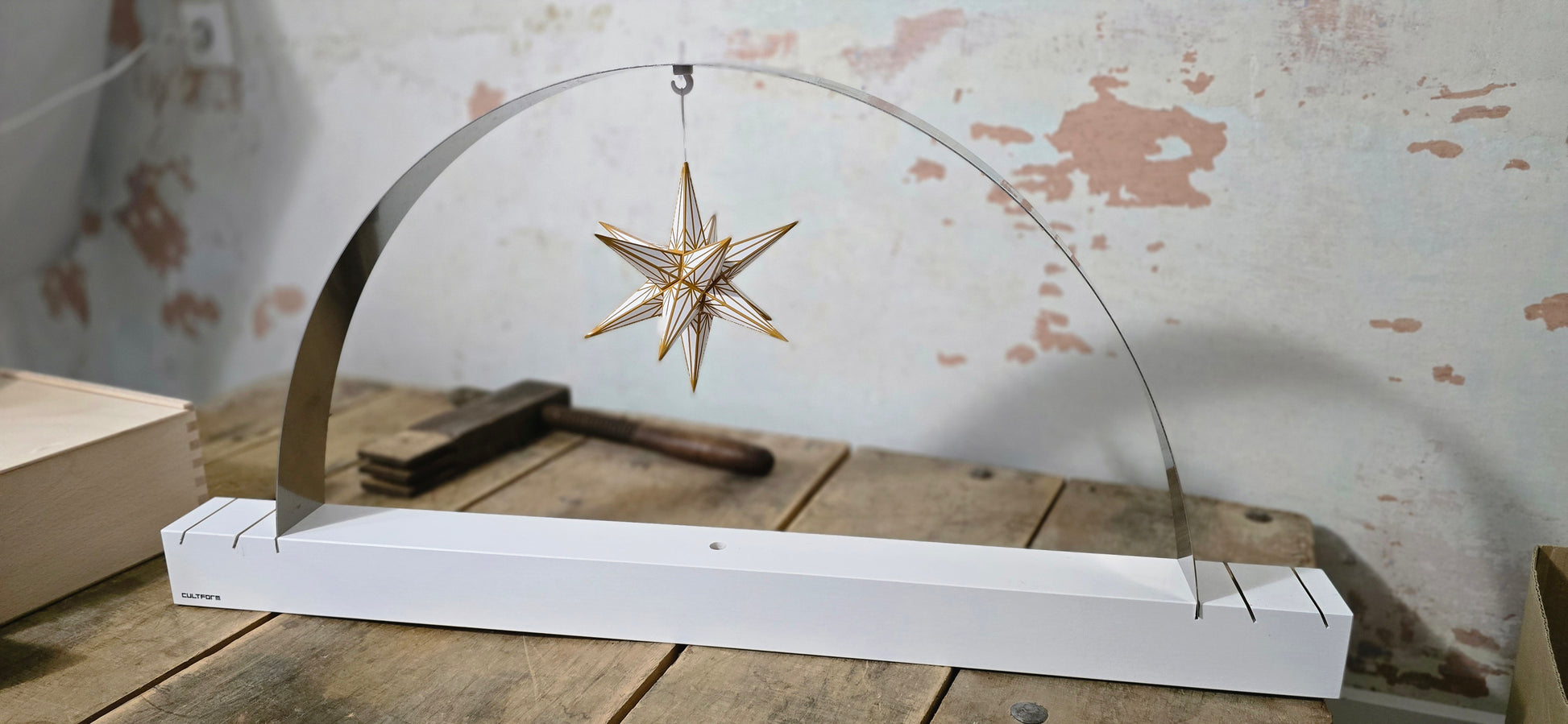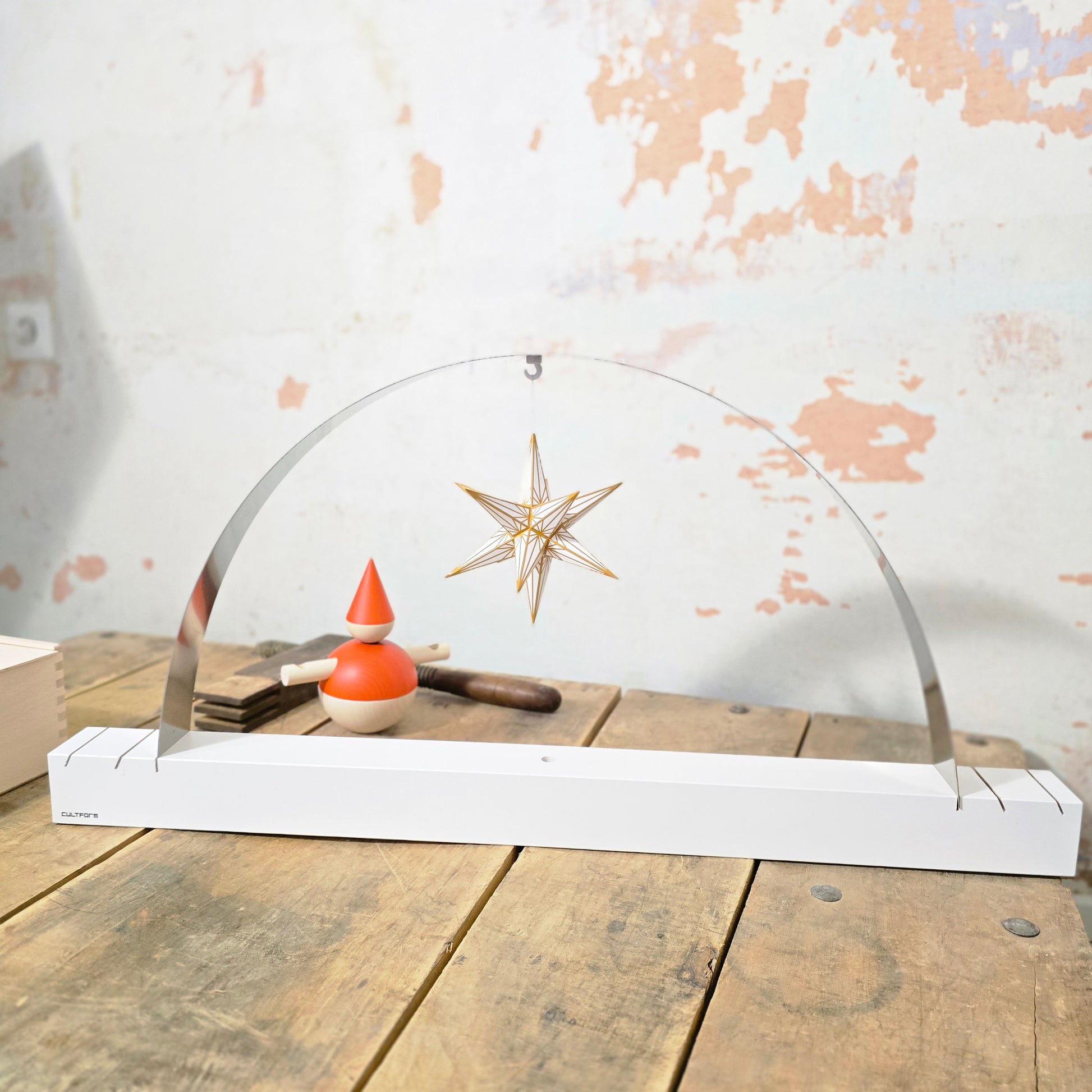 L'arco di tensione, l'interpretazione moderna e minimalista dell'arco portacandele del marchio di design Cultform, è disponibile in due colori e in naturale. Abbinabile alla serie di case di Babbo Natale con affumicatoio, casa delle candele, serra, faro ecc. Realizzato a mano in Germania, autentico Erzgebirge Materiale e dimensioni Base: abete rosso smaltato e laccato 80 cm di lunghezza, 6 cm di larghezza e altezza; Arco: acciaio per molle, lungo 100 cm, largo 6 cm, alto 1 mm. Base con 3 fessure su entrambi i lati per accogliere l'arco in acciaio a molla, in modo da poter cambiare l'arco a piacere. C'è anche una canalina per cavi + un foro nel pavimento per adattare l'illuminazione, se necessario. Viene consegnato smontato ed è molto facile da montare da soli. Inoltre, quando non è di stagione, può essere riposto in una pratica scatola per risparmiare spazio. (Le immagini contengono suggerimenti per la decorazione, gli articoli non sono inclusi nel prezzo o nella consegna)