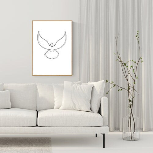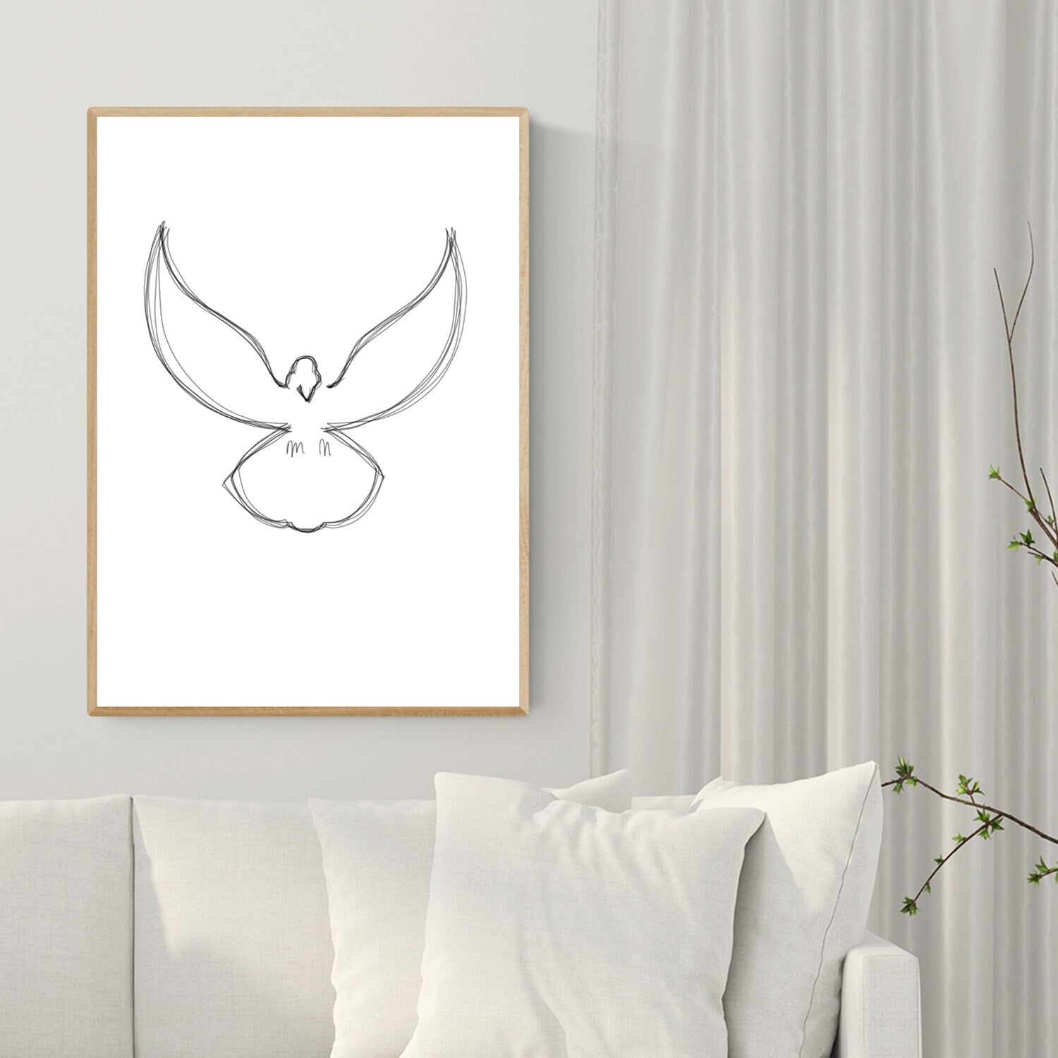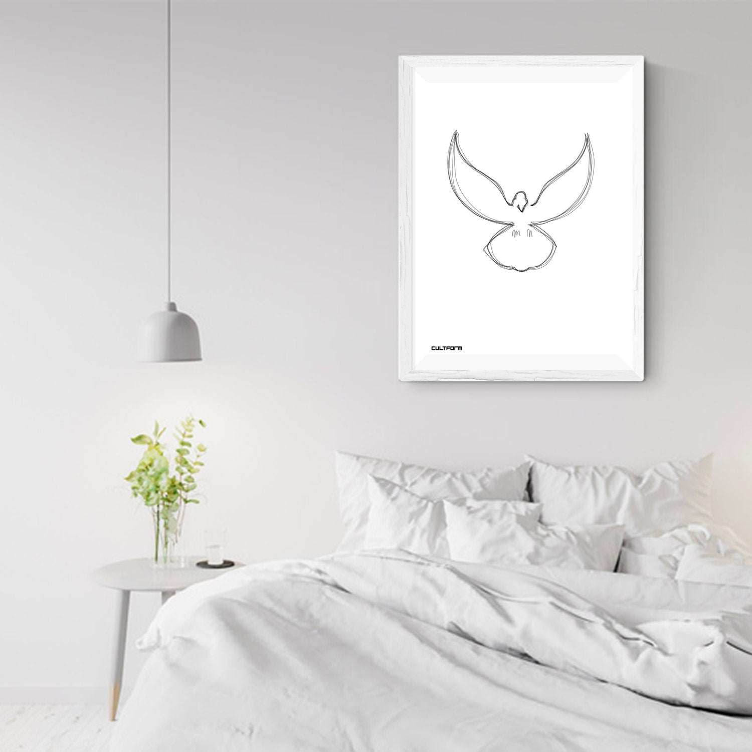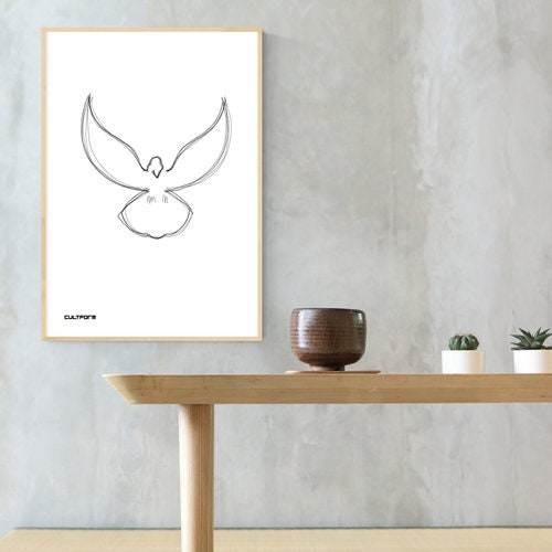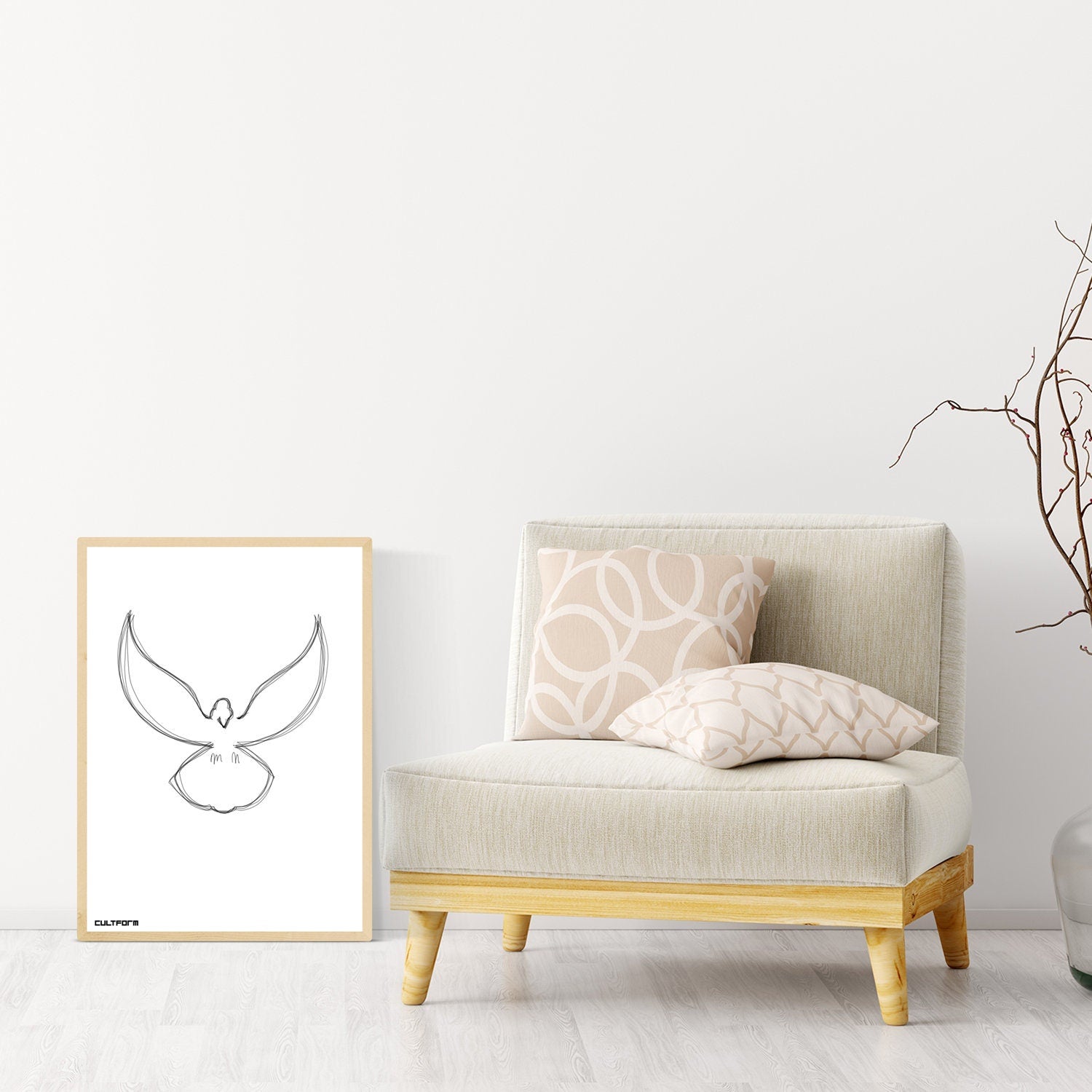 Handgezeichnete minimalistische Schwarz-Weiss-Grafik Grafik/Poster als Sofort-Download einer Taube von CULTFORM zum selbst Ausdrucken.
